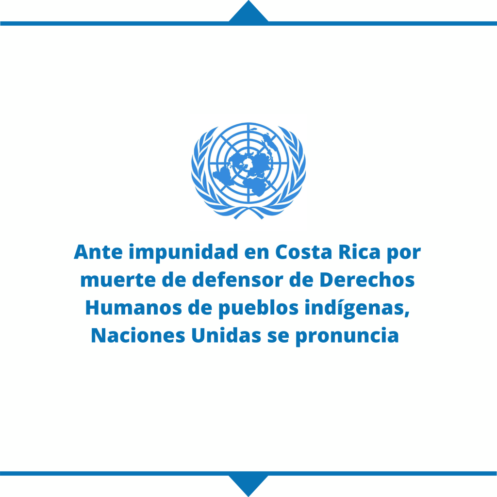 «Naciones Unidas recordó el llamado que hicieron los expertos del Consejo de Derechos Humanos de la ONU Michel Forst, en su momento Relator Especial sobre la situación de los defensores de los derechos humanos; Victoria Tauli Corpuz, en su momento Relatora especial sobre los derechos de los pueblos indígenas y Agnès Callamard, Relatora Especial sobre ejecuciones extrajudiciales, sumarias o arbitrarias, en el que urgieron a las autoridades costarricenses a “identificar a los autores materiales e intelectuales de este grave delito y los lleven ante la justicia, de acuerdo con la ley”.