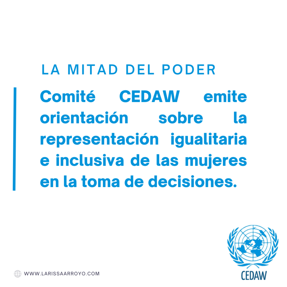 El Comité para la Eliminación de la Discriminación contra la Mujer (CEDAW) ha emitido una nueva Recomendación General, la número 40 (GR40), en la que exige a los Estados parte garantizar la “representación igualitaria e inclusiva” de mujeres y hombres en los sistemas de toma de decisiones, estableciendo como estándar la paridad 50-50. Esta recomendación destaca que la igualdad de acceso debe existir en todas las esferas, incluyendo el sector público, privado, político, económico y digital.